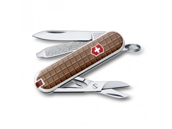Durante o concurso de design da linha Classic Edição Limitada, uma ideia excepcional despertou a atenção da Victorinox: representar o Chocolate suíço em um Canivete bestseller da marca. O modelo escolhido foi o Classic, produto perfeito para quem quer algo tipicamente suíço.
