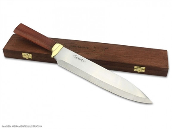 Faca Churrasco Cabo de Madeira Zakharov Gaúcha 10". A Faca de Churrasco Gaúcho 10" possui um tamanho ideal para cortes de carne crua ou assada. Sua lâmina de 25 centímetros faz com que seu corte seja preciso e podendo ser aplicado a várias ocasiões na Cozinha. Seu cabo é feito artesanalmente com Madeira de Lei Nobre, assim garantindo muito mais durabilidade. Sem dúvida é uma peça que não pode faltar na sua Cozinha.